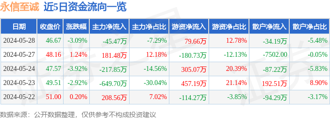 永信至诚(688244)5月28日主力资金净卖出45.47万元
