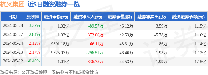杭叉集团融资融券信息显示,融资方面,当日融资买入659.42万元,融资偿还748.99万元,融资净偿还89.57万元。融券方面,融券卖出9.62万股,融券偿还6.03万股,融券余量46.12万股,融券余额1356.04万元。融资融券余额1.15亿元。近5日融资融券数据一览见下表: