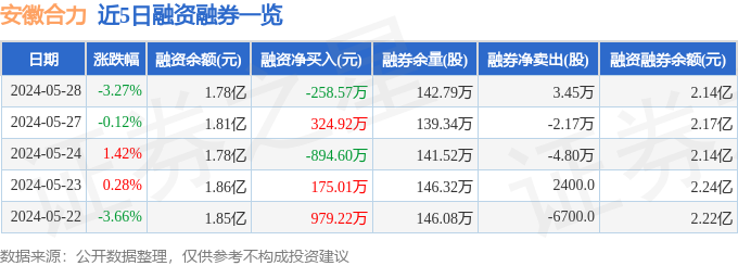 安徽合力融资融券信息显示,融资方面,当日融资买入1494.5万元,融资偿还1753.07万元,融资净偿还258.57万元。融券方面,融券卖出6.7万股,融券偿还3.25万股,融券余量142.79万股,融券余额3549.84万元。融资融券余额2.14亿元。近5日融资融券数据一览见下表: