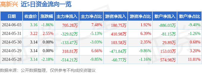 6月3日的资金流向数据方面,主力资金净流入705.28万元,占总成交额7.48%,游资资金净流入180.75万元,占总成交额1.92%,散户资金净流出886.03万元,占总成交额9.4%。
