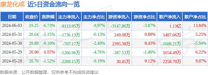 康龙化成(300759)6月3日主力资金净卖出8113.95万元