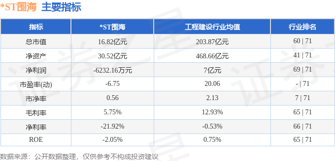 *ST围海2024年一季报显示,公司主营收入3.09亿元,同比上升46.12%;归母净利润-6232.16万元,同比下降419.73%;扣非净利润-6363.29万元,同比下降243.77%;负债率57.93%,投资收益73.24万元,财务费用1224.4万元,毛利率5.75%。*ST围海(002586)主营业务:生态环保海堤工程、河道治理工程、水库工程、城市防洪工程、农田水利工程、市政道路桥梁工程、市政管网工程、园林景观绿化工程、房屋建筑工程、港口与航道工程等,业务覆盖水利、市政、房建、港航、爆破等专业建设领域。