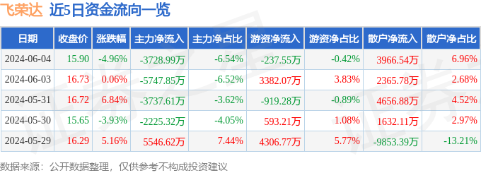 飞荣达(300602)6月4日主力资金净卖出3728.99万元