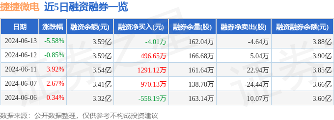 捷捷微电融资融券信息显示,融资方面,当日融资买入5919.18万元,融资偿还5923.19万元,融资净偿还4.01万元。融券方面,融券卖出13.33万股,融券偿还17.97万股,融券余量162.04万股,融券余额2851.9万元。融资融券余额3.88亿元。近5日融资融券数据一览见下表: