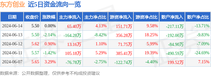 6月14日的资金流向数据方面,主力资金净流入65.4万元,占总成交额4.13%,游资资金净流入151.71万元,占总成交额9.58%,散户资金净流出217.11万元,占总成交额13.71%。