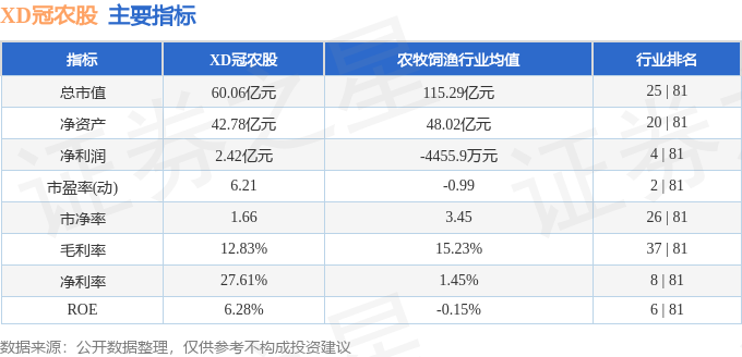 该股主要指标及行业内排名如下: