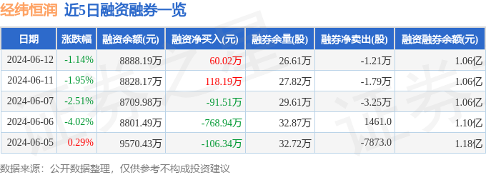 经纬恒润融资融券信息显示,融资方面,当日融资买入278.0万元,融资偿还217.98万元,融资净买入60.02万元。融券方面,融券卖出1587.0股,融券偿还1.37万股,融券余量26.61万股,融券余额1662.81万元。融资融券余额1.06亿元。近5日融资融券数据一览见下表: