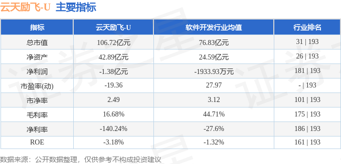 该股主要指标及行业内排名如下:
