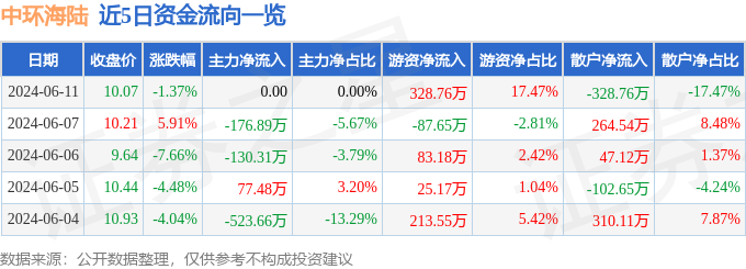 股票行情快报:中环海陆(301040)6月11日游资资金净买入328.76万元