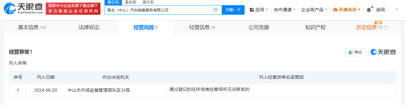 天眼查app显示,近期,高合(青岛)汽车销售服务有限公司因通过登记的住所或经营场所无法联系,被列入经营异常名录。该公司成立于2021年4月,注册资本20亿人民币,法定代表人、董事长兼总经理为丁磊,由高合汽车关联公司华人运通投资有限公司全资持股。此外,上述青岛公司旗下的高合(中山)汽车销售服务有限公司、南昌高合汽车销售服务有限公司南昌红谷滩区分公司也因通过登记的住所或者经营场所无法联系,被列入经营异常名录。