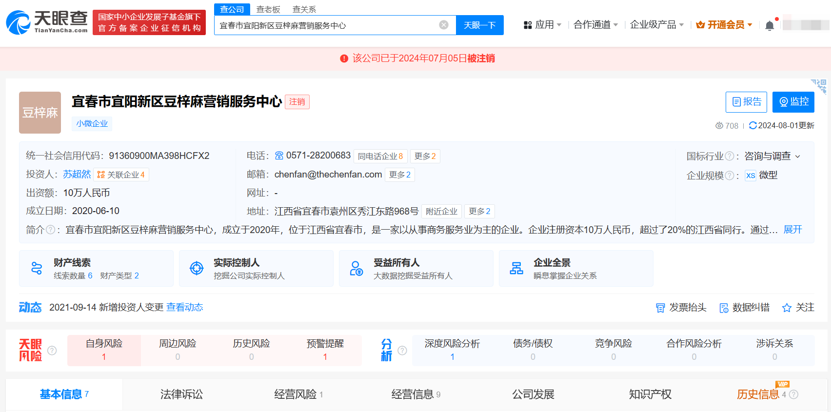 值得一提的是,此前,雪梨通过设立多家个人独资企业,偷逃个人所得税3036.95万元,后于2021年被浙江省杭州市税务部门罚款6555万元。其中,涉及偷逃税的上海豆梓麻营销策划中心、上海皇桑营销策划中心已于2021年注销,宜春市宜阳新区豆梓麻营销服务中心、宜春市宜阳新区黄桑营销服务中心也于今年注销。