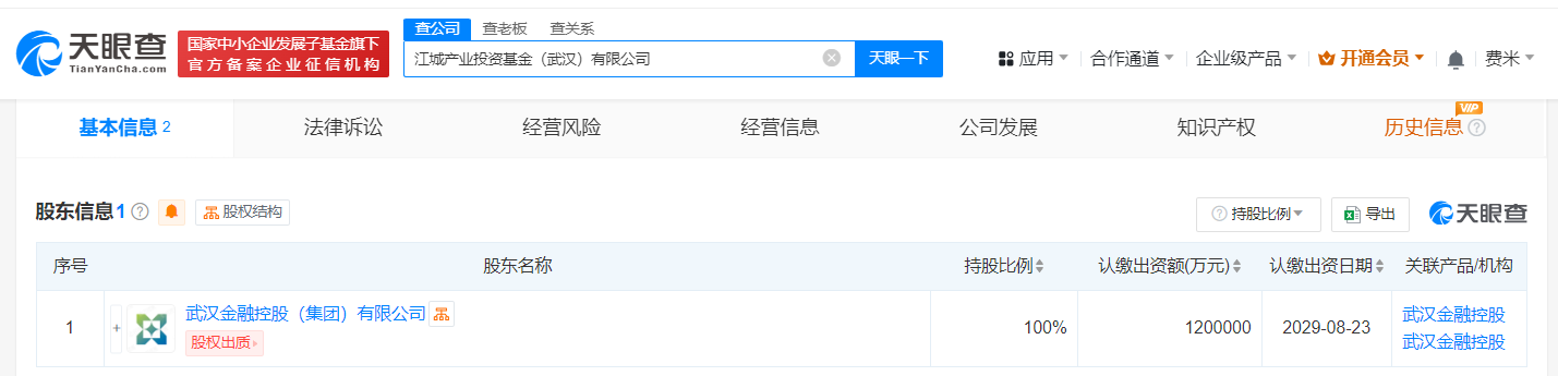 天眼查app显示,近日,江城产业投资基金(武汉)有限公司成立,法定代表人为程驰光,注册资本120亿人民币,经营范围为私募股权投资基金管理、创业投资基金管理服务,融资咨询服务,以自有资金从事投资活动,以私募基金从事股权投资、投资管理、资产管理等活动。股东信息显示,该公司由武汉金融控股(集团)有限公司全资持股。