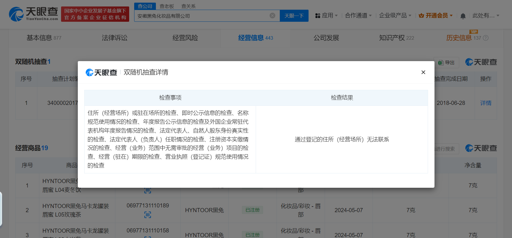 揭秘被指擦边美妆品牌黑兔公司 黑兔曾被抽检出公司无法联系