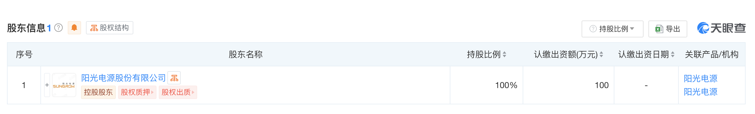 天眼查app显示,近日,阳光电源(内蒙古)有限公司成立,法定代表人为徐峰,注册资本100万人民币,经营范围含新能源原动设备销售、光伏设备及元器件销售、储能技术服务等。股东信息显示,该公司由阳光电源(300274)全资持股。