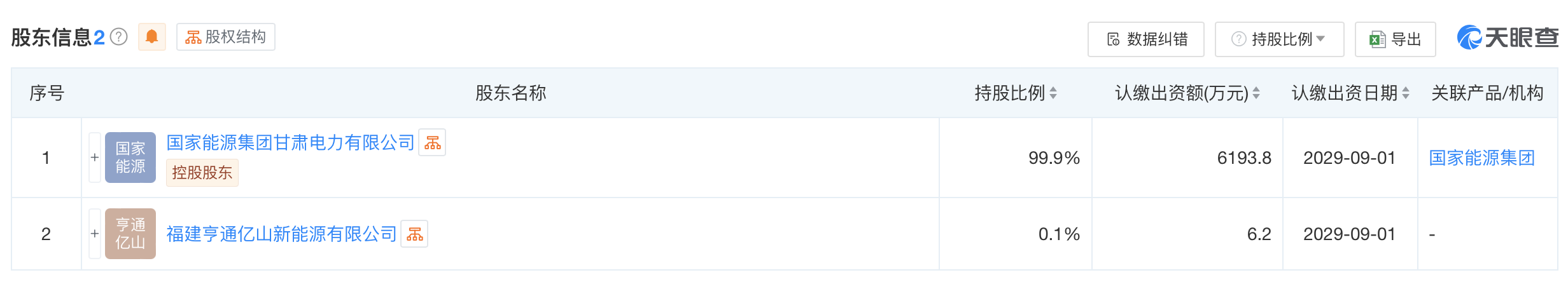 天眼查app显示,近日,临夏国能光伏发电有限责任公司成立,法定代表人为刘建国,注册资本6200万人民币,经营范围含新兴能源技术研发、太阳能发电技术服务、合同能源管理等。股东信息显示,该公司由国家能源集团甘肃电力有限公司、福建亨通亿山新能源有限公司共同持股。
