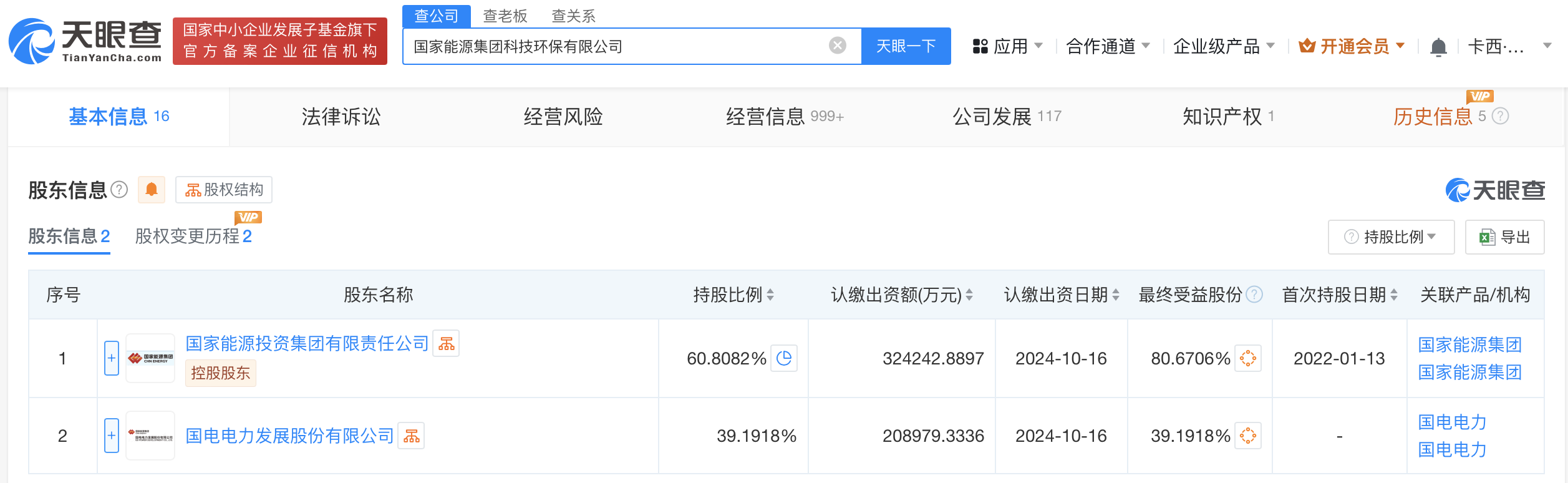 国家能源集团科技环保有限公司成立于2022年1月,法定代表人为唐超雄,现由国家能源投资集团有限责任公司、国电电力共同持股。
