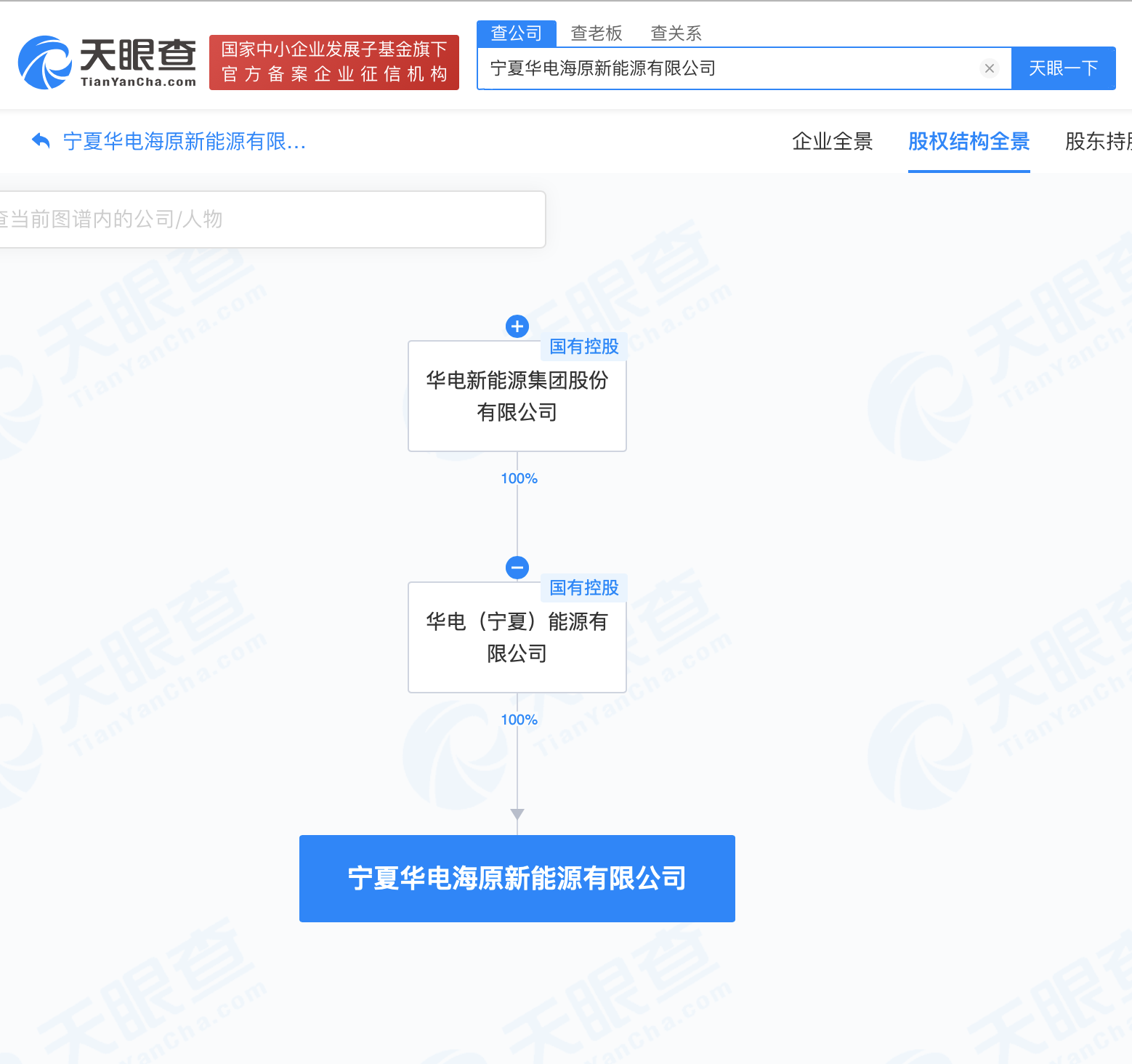 天眼查app显示,近日,宁夏华电海原新能源有限公司成立,法定代表人为王军,注册资本7.5亿人民币,经营范围含风力发电技术服务、太阳能发电技术服务、热力生产和供应、节能管理服务等。股权穿透图显示,该公司由华电(宁夏)能源有限公司全资持股,后者为华电新能源集团股份有限公司全资子公司。