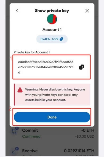 6、单击将私钥复制到剪贴板。确保将其保存在安全的地方。单击“完成”关闭屏幕。